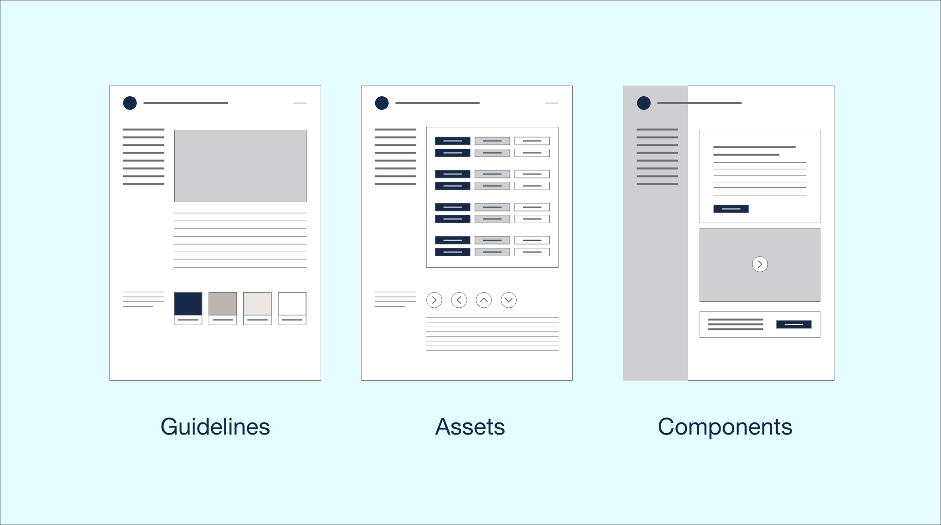 Guidelines form the foundation of the design system, providing rules and principles that govern its use. These include: